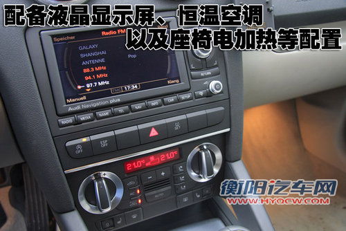 奥迪A3三门版和Sportback版车型配备了大尺寸液晶显示屏、自动恒温空调以及座椅电加热等配置。此外金属镀铬的空调出风口以及手套箱拉手,又突出了内饰的视觉效果。