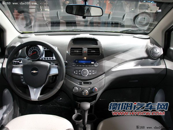 新Spark内饰的细节,受制于成本的因素,新Spark的内饰材质毫无疑问的使用了硬邦邦的塑料,但是雪佛兰在材料表面压上了一些纹理,并且采用了银色+仿碳纤维装饰板点缀,使其档次感有所提升。车内采用了拼色座椅,不仅视觉效果出众,而且支撑到位。新Spark的内饰布局显得更加高端。蓝色背光和整体式中控台造型前卫时尚,数显+模拟仪表盘看起来很有科技感,带有花纹的座椅体现着其时尚年轻的产品定位。