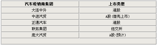 应该说上市融资,今年不仅属于汽车厂家也属于各大经销商。上市是经销商快速筹集资金的良策,能通过收购兼并短时间内扩大规模。更大的意义在于改变中国汽车市场经销商利润低、过度依赖厂家的弊病,当然这也是符合成熟汽车市场的发展规律的!