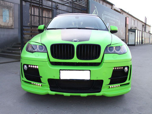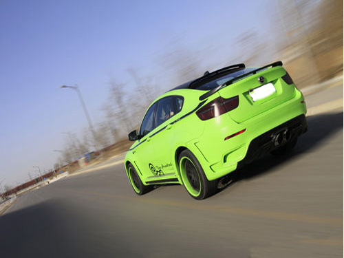 全车都粘上了绿色贴纸,车主好招摇啊!是否耐看?必将是仁者见仁智者见智,只能说这么靓的涂装很对得起X6 作为一跨界SAV中的“Sports”成分。