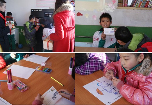 2011年1月11日清晨,北京宝泽行的工作人员与BMW爱心车主一道驱车前往北京市海淀行知学校,将广大BMW爱心车主捐赠的书籍与文化用品亲手转交给行知学校的老师和同学们,并为师生带去了精心准备的礼物。活动当天,北京宝泽行工作人员和同学们一起将BMW阅读角建造起来,将一册册的图书仔细的摆放在书架上,望着全新的BMW阅读角,孩子们的脸上绽放出了灿烂的笑容。