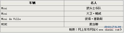 够小够个性的MINI从上市时就深受到演艺界的明星喜欢,他们不仅经自己的座驾是MINI,而且还自己设计MINI的外观,我们就来看看这些大腕和MINI有这何样的情缘。