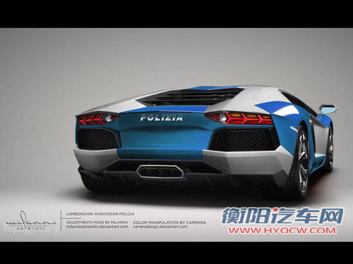 富有激情的意大利人显然不喜欢一成不变,兰博基尼今年刚刚推出了家族史上最强悍的车型-全新Aventador LP700-4,仅仅几个月过后,Milanno Artworks就联手CarreraDesign推出了其警车涂装效果图。虽然官方还没有宣布是否有此计划,不过介于兰博基尼和意大利警方的良好关系,以及如此热情坚实的群众基础,相信Aventador正式披上蓝白相间的警服只是时间问题。