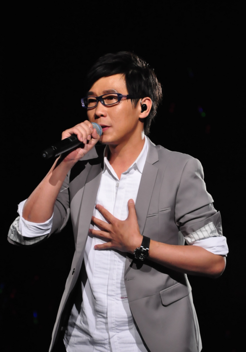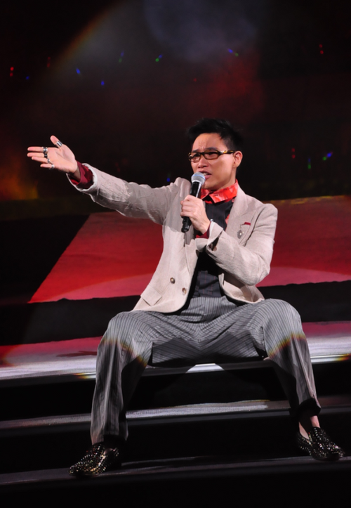 接下来上场的就是情歌王子苏永康。比起他在青岛站时所穿的极具个性的花裤,本次合肥站他似乎收敛了不少——不过只是外面穿的中规中矩,只是里面那一抹红色出卖了他性格中的不羁。