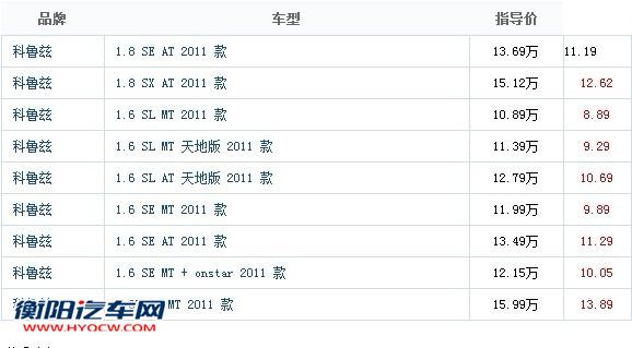 衡阳汽车网10月23日讯:编辑在北京中通盛达汽车贸易有限公司了解到,雪佛兰科鲁兹最高优惠3万。具体降价明细如下表: