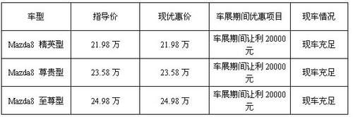 今日,编者在走访广州汽车市场时了解到,为在第八届广州国际车展期间取得好的销量,全国最大的一汽马自达广州博程4S店携大型商务MPV马自达8钜惠迎接车展,车展期间,无敌第二排马自达8让利20000元。详情请咨询020-82300600 22223619