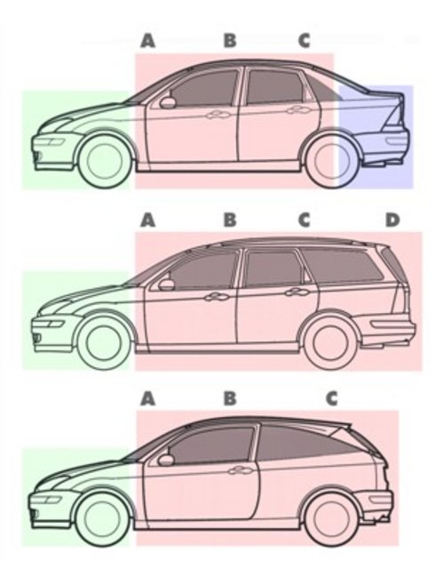 说到hatchback,就不得不介绍它和Touring 的不同之处。hatchback,在中国称之为掀背轿车,和旅行版轿车最大的不同在于它几乎没有D 柱,或者D 柱非常倾斜。其次,掀背轿车的后悬非常短,而旅行版轿车的后悬较长。不仅如此,旅行版轿车通常具有两到三排的座椅,而掀背轿车大多只有一到两排座椅。这三点都能够说明旅行版轿车相比掀背轿车具有更大的后备箱空间。此外,最重要的一个区别在于为了避免因后备箱装载能力增加而影响原始的车身姿态和驾驶感觉,旅行版轿车通常会在后轮悬挂系统的选择上与标准版三厢轿车有所不同。这点上,掀背轿车是绝对做不到的。
