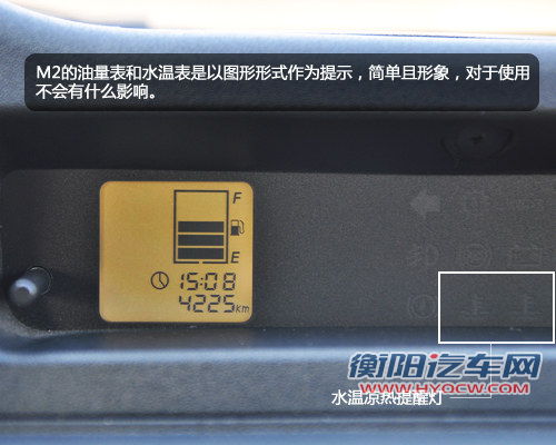 中置仪表盘的样式很简单,速度表看起来很清晰,不过因为发动机转速表的刻度使用偶数刻度,所以在读取中可能会不太舒服,如果把奇数数字也放上会更好些;M2并没有油量表以及水温表,而是在主仪表盘右侧增加以图形形式表现的提示。