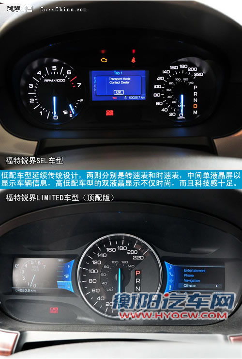 此外,在仪表盘方面,福特锐界根据不同配置车型,也有不一样的设计,这是出于什么原因而考虑的呢?低配车型延续传统设计,两则分别是转速表和时速表,中间设置了单液晶屏以显示车辆信息,而高低配车型的双液晶显示不仅时尚,也让驾驶者可以手不离开方向盘完成更多操作,间接增加了安全性。而汉兰达的仪表盘设计相当简洁,三炮筒式造型不乏运动元素。