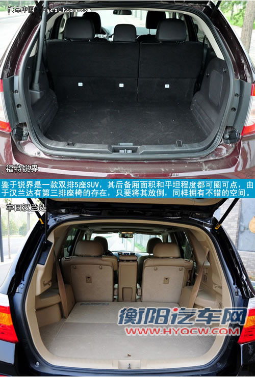 虽然厂家没有公布7座汉兰达的具体后备箱容积,但鉴于有第三排座椅的存在,我们也不应该对其抱太大希望,而当第三排座椅放倒后,其腾出来的载物空间还算是不错了。相比之下,锐界目前还是典型的双排5座SUV,没有了第三排座椅的影响,其后备厢的面积和平坦程度都可圈可点,常规状态下就可以满足大多数用户的需求。