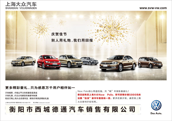 2011年是上海大众VW品牌厚积薄发的一年,其不仅在市场销量上攀升新的巅峰起点,更是在经销商网络和售后服务方面取得了长足发展。2011年8月,上海大众VW品牌的第500家特许经销商店正式落成,标志着上海大众营销网络覆盖面的又一次扩展,成为国内覆盖最广且最具竞争力和执行力的管理体系,同时也意味着上海大众VW品牌追求卓越的理念得到了市场和消费者的充分肯定。如此奋进激昂之势,相信上海大众VW品牌在充满希望的2012年将再次挥斥方遒,缔造新的辉煌。