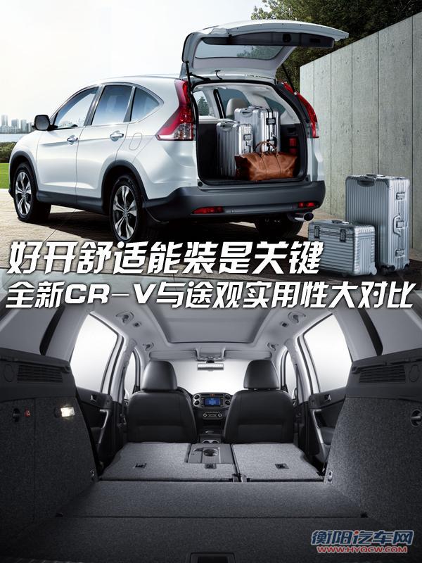 随着中国汽车市场的不断发展,国人对于新形态汽车的接受速度越来越快——从过去只认三厢轿车,到现在两厢车成为时尚,越来越多形态的车型在市场上热销。城市SUV自CR-V进入中国开始,也迅速成为了中国车市非常重要的一块细分市场。因为城市SUV同时具有轿车轻松的驾控感和越野车的高通过性及承载量,很快就成为家用轿车的新宠并畅销起来。随着CR-V的热销,越来越多的竞争车型涌入中国,途观就是一款常常拿来和CR-V 对比的车型,很多人拿CR-V与途观PK动力、PK做工、PK质量、PK配置,这里我们来针对城市SUV最重要的身份——家用车所必需具备的实用性来做一番全面的对比,看看谁才是最称职的城市SUV。