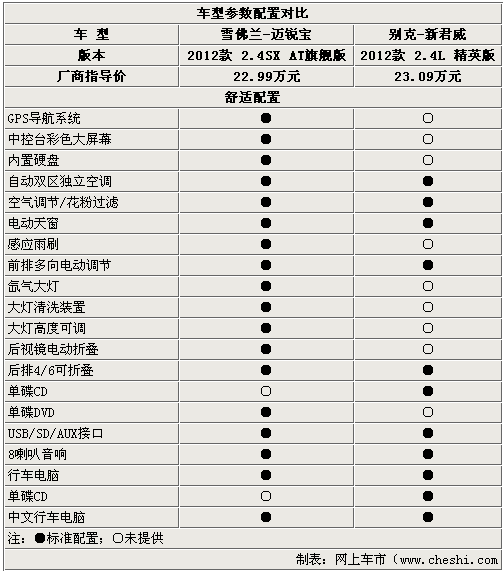也许我们在前面看到了太多的一致,看到这里大家也许会觉得他们两个简直就是一母双生嘛,但通过舒适性配置的对比我们可以重新来看这对兄弟了,在舒适性配置上,迈锐宝旗舰型全面超越了新君威精英型,虽然只有两千元的售价差别,但从配置价值上看迈锐宝显然更合算。