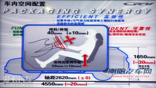 新一代CR-V车身长宽高分别为4550×1820×1650mm,轴距2620mm。与老款相比新车轴距没有变化,但在高度上降低了30mm,长度上缩短了20mm。这样的设计在流行加大、加长的国内市场上显得有些特立独行。