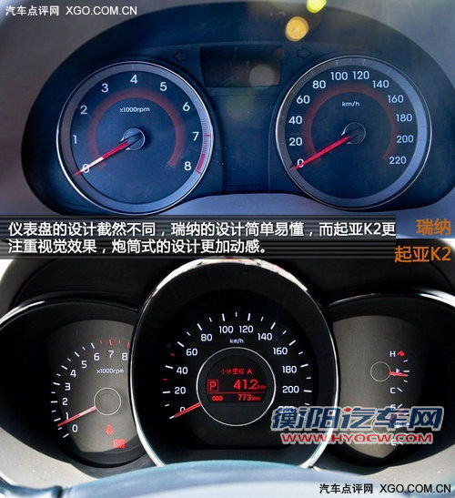 透过仪表的设计,就能感受到两款车型的诉求点,瑞纳更偏向传统常规的家用市场;K2则表现出明显的运动倾向,吸引年轻消费者。