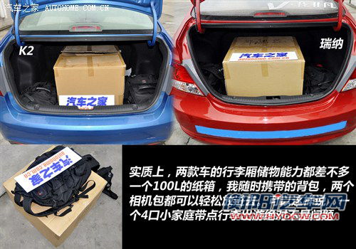 既然谈到行李厢空间,那不能不提的是后排座椅的折叠放倒功能。两款车的两厢版本的后排座椅都可以按比例放倒,没有差别;而三厢版本则有所区别,K2三厢车型的高配车型的后排座椅可以按比例放倒,但瑞纳三厢则是全部车型都没有这个功能。如果按整体来看,K2行李厢空间的人性化方面要稍微高出一些。