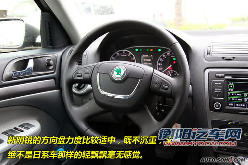 仪表盘的变化也比较明显,黑底白字的搭配更加醒目,水温表和油量表的下移,也使得整个仪表盘更耐看些。此外,明锐的音响、空调控制面板也进行了调整,相比老款质感上有了一定的提升。