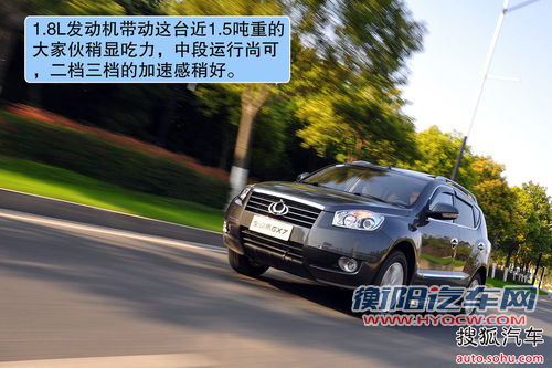 瑞虎同样采用前置驱动形式,前后悬分别为麦弗逊式独立悬挂和拖曳臂式半独立悬挂的设计。瑞虎的底盘经过了英国莲花公司进一步专业化调校,使其更贴近了轿车化的驾驶感而又不会失去SUV特有的硬朗感,虽然高速行驶依然会有飘忽的感觉,不过整体而言瑞虎的行驶稳定性还是比较让人放心的。