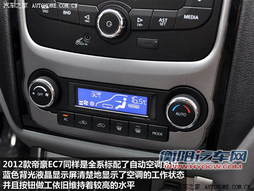 从09年吉利帝豪EC7的上市到前段时间2012款车型的推出,我们看到了帝豪EC7的不断进步。它在外观、空间、做工及配置方面都有着较高的水平,是一款值得推荐的自主品牌紧凑型车。而本文主要论述的自动空调系统,2012款帝豪EC7全系配备了自动空调,这项功能是帝豪EC7的卖点之一,相信这项较为实用的配置将会增加帝豪EC7的可购性。