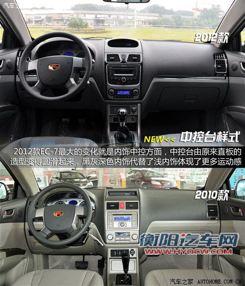 与外观细微的变化相比,2012款帝豪EC7的内饰变化比较明显。新车内饰摒弃了旧款车型中庸的设计风格,中控台面板由原来直板的造型变得圆滑起来,黑灰深色内饰代替了浅内饰,整体在视觉上更具时尚感和运动感。