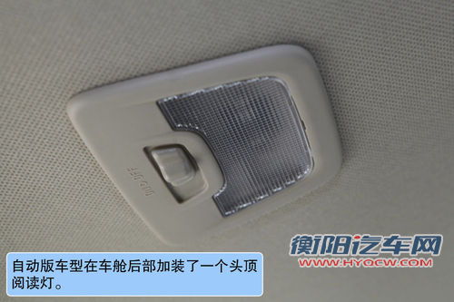 在内饰上,顶配的精英型采用了米色基调双色进行调试,材质上尽管不够上档次,但做工还是不错的。另外,在自动挡车型的的车仓后部还添加了一个头顶阅读灯,为后排的乘坐者尤其在夜间的时候提供了很大的方便。在乘坐空间上,前后排的腿部空间都比较宽敞,但后排的头部空间不是很理想,不过满足一般个头的朋友来说已经够用了。