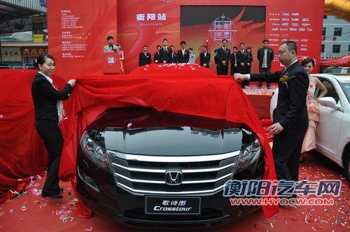 衡阳永兴家居广场有限公司营销企划部经理尉华与广汽本田衡阳和信店总经理王美益为广汽本田歌诗图揭幕