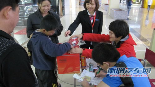 惊喜连连。购车的消费者还可以参加组委会举办的抽奖。在抽奖处笔者见到了这样一家子,全家将抽奖的机会让给了孩子,孩子挺高兴,踮起脚尖,抽出一张奖条,吉祥物一个。孩子有点小小的失落,组委会工作人员不忍心就又给了他们一次机会。又是一个吉祥物,“好事成双”,小孩子的一句话逗笑了全场所有的人。这家的男主人张先生告诉笔者,几天前就知道中部巡展了,家里做了很充足的准备,选好了车型。到现场一看,车型太多了,结果经过这家展台时听销售人员的介绍才临时决定换这款车。