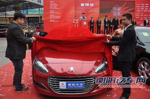 衡阳时代骄子广告有限公司总经理欧伟与衡阳华佳汽车销售服务有限公司销售经理楚甜为东风标致 308揭幕