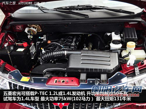 在动力方面,五菱宏光全系分别搭载P-TEC 1.2L和1.4L两款发动机,均由上海通用五菱自主研发,其中1.2L发动机的最大功率为63kW(86马力)/6000rpm,最大扭矩为108N·m/4000rpm,1.4L发动机最大功率为75kW(102马力)/6000rpm,最大扭矩为131N·m/4200rpm,而与这两款发动机配备的均是5挡手动变速箱。