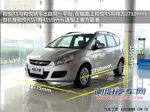 和悦RS是基于和悦轿车平台研发MPV车型。它的消费群体主要是那些兼顾家庭生活的小资老板。它最大的特点是低廉的售价、宽敞的车内间和灵活多变的座椅组合,光是这几点就能让它争取到一大票消费者。