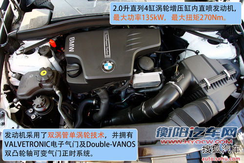 宝马X1与奥迪Q3车型的命名有着异曲同工之处,代号为N20的全新2.0升涡轮增压缸内直喷发动机,根据车型不同提供了两组动力配置。20i车型的最大功率为135kW/5000-6250rpm,扭矩峰值为270N·m/1250-4500rpm。而装配在28i车型上的那台同排量引擎,则具有180kW/5000-6500rpm最大功率,以及350N·m/1250-4800rpm峰值扭矩输出。配备了性能出色的8速手自一体变速器,行驶平顺性表现非常出色。
