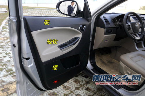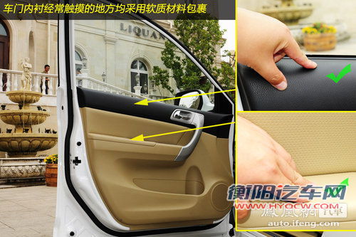 在车门部分,全球鹰GX7和长城哈弗H6的扶手都设计有软垫,扶起来手感很不错,但在其它部分并没有特殊的设计,整体感觉比较价廉。另外,长城哈弗H6车窗配有防夹手功能,设计非常人性化。