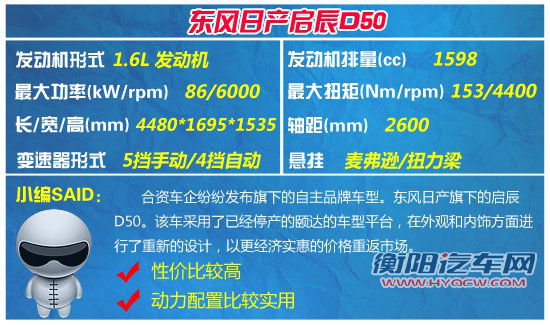 启辰D50价格:6.78-8.38 万元 品牌:东风日产