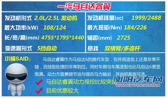 睿翼价格:17.98-23.98 万元 品牌:一汽马自达