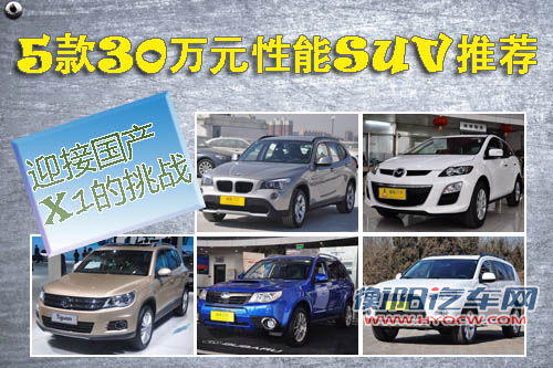 华晨国产宝马正式上市的国产X1分为两驱和四驱版两种,共计6款车型,售价区间为“28.2-49.8万元”。从售价来看,国产宝马X1无疑已经大幅度下调,而外观、内饰、动力或空间什么的,国产宝马与进口版本并没有什么本质区别。而从另一方面理解,宝马X1凭借国产将价格下压,那么现有几款性能SUV无疑就受到了挑战。下面,我们就针对30万元内5款性能SUV做一个推荐,看看他们各自有什么操控上的优势。