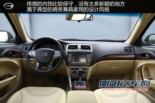 广汽传祺内饰黑色和米色的颜色搭配为它营造了浓郁的家居风情,而且在细节的地方还添加了木纹饰条来进行修饰,看上去更加的尊贵。广汽传祺中控台的整个布局看上去很干净,按键的大小也很合适手感也不错,更加的方便操作。广汽传祺内饰的做工不错,但是有的车门会出现异响的问题。