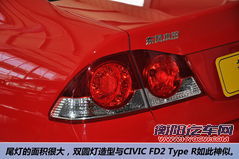 长条形镀铬格栅看起来很熟悉,只不过被换上了全新的标识。而这个标识是把东风的两个火凤凰的车标与本田的H型车标相互抽象再合并,其实就是把那两个火凤凰本来相互旋转改成对立状,不过给人的感觉是一个空心的圆圈,就像车标被淘气的小朋友抠掉一样。长条形的大灯被改成了花生仁状,雾灯也由圆形改变成了四边形。