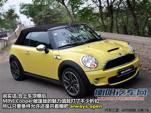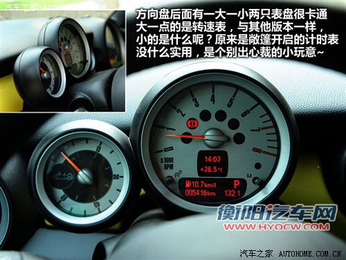 而正是由于在敞篷关闭时并不明显的视觉效果,因此厂家在宣传这款车型时采用了“Always Open”理念,他们希望车主们能够尽情的敞开顶棚,只要天气和温度允许。因为只有那样,才会让MINI COOPER/COOPER S CABRIO的独特魅力真正展现出来;同样因为如此,MINI的设计师竟然为这两台敞篷车专门设计了一个计时器,每到6个小时会自动清零,用来统计敞篷开启的时间……