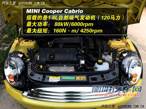 动力方面,MINI COOPER CABRIO和普通版车型一样搭载的是一款代号为N12B16BA的1.6L全铝自然吸气发动机,最大功率88kW(120马力)/6000rpm,最大扭矩160N·m/4250rpm,与之匹配的是一款6速手自一体变速箱,这也意味着这款车型在性能上应该是我们所推荐的车型中最差的,我们评测组的实测百公里加速成绩仅为12.4秒。