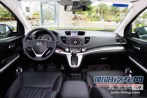 在内饰设计中融入高端、先进感,三辐黑色真皮多功能方向盘、多功能中央置物区,加之设计抢眼的中控台和仪表盘,于细节中体现完美。全新CR-V采用先进的智能进入系统,通过智能钥匙感应,实现车门自动解锁,并新增的一键启动功能,轻轻一按就可便捷启动,智能化多功能显示系统可对屏保、音乐、行车信息、导航提示、蓝牙显示及可视化倒车系统等多项功能进行集中控制。