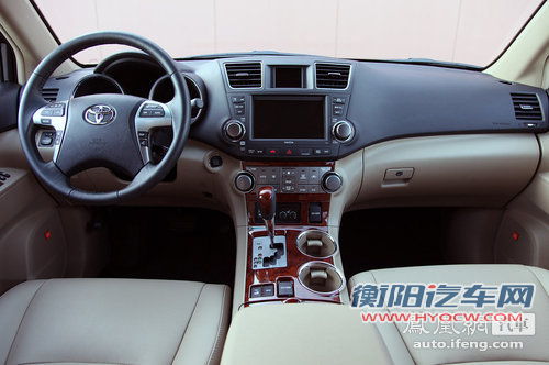 内饰中汉兰达撇弃了原来SUV车型粗狂的风格,采用了完全的轿车化设计,豪华而且细腻,上深下潜的颜色搭配符合流行趋势,桃木内饰的材质与凯美瑞一样,配合上数处镀铬亮圈的点缀,十分显档次。多功能方向盘上有多达12个控制键,行车时可能用到的项目基本都可以做到手不离方向盘就能完成。另外汉兰达的内饰后两排共设计有7处出风口,坐在后排的乘客也能享受到同样的清凉。空间上,2790mm的轴距保证了前两排乘客都有足够的腿部空间,另外第二排座椅可以前后移动,所以第三排乘客也不会非常的委屈。