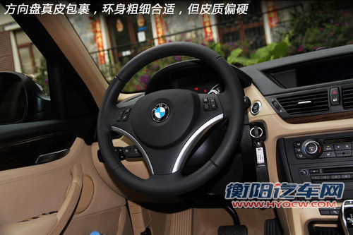 内饰方面,国产后的X1内饰用料和工艺基本延续了进口车型的品质,车内塑料、真皮的质感和下料方式均没有变化。其实覆盖仪表台的塑料手感还是显得有点硬,但需要了解X1在宝马X家族中是最亲民的产品,它的内饰氛围和用料档次自然无法和X3、X5站在同一水平线上。但可以保证华晨宝马X1的车厢没让人找到减配的痕迹。