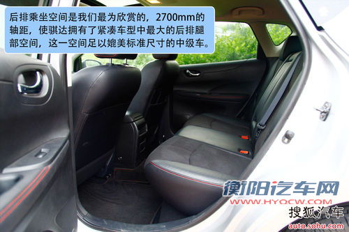 自从骐达轴距由老款的2600mm加长至2700mm。可以说骐达在同级别车型中的空间表现已经名列前茅了,前后排腿部空间完全没有问题。即便是高个体胖男性,在前后排体验,也完全没有问题。而头部空间更是骐达的优势,前排甚至有2拳优势,而后排则有1拳的余地。