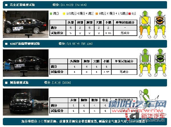 在C-NCAP碰撞测试中,昊锐表现尚可,只是在完全正面碰撞测试中假人的胸部和腿部受到了一定程度的伤害,40%正面偏置碰撞测试和侧面碰撞测试,均取得了出色地成绩。
