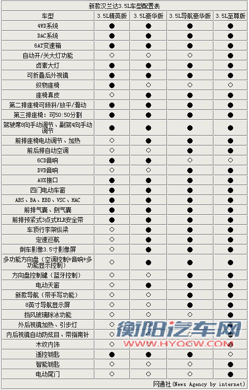 新款汉兰达3.5L车型增加DAC下坡辅助系统、外后视镜引步灯等配置