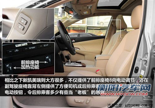 座椅方面新凯美瑞要比新帕萨特在配置上高出不少,尽管帕萨特的真皮座椅工艺造型均不错,但全手动调节的配置未免太过简陋,别忘了新凯美瑞可是配备的主副驾驶席8向电动调节座椅以及座椅电加热这两项相当人性化的配置。