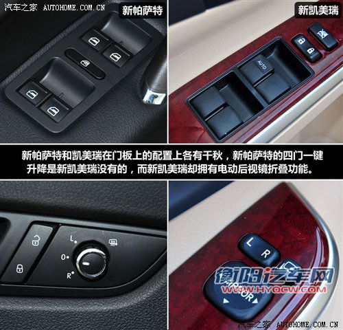内饰方面新帕萨特唯一能说的过去的就要算中控台的石英钟和四窗一键升降这两项配置了,相比凯美瑞的单色液晶时间显示屏,新帕萨特的石英钟的设计更加商务一些,毕竟一块像模像样的钟表也算是商务男人必备的装饰品之一;装配四门车窗一键升降一直是德系车型的传统,而新凯美瑞则延续着日系车型的精打细算,仅为主驾驶席的车窗装配一键升降功能,其他车门仅仅是电动升降而已。