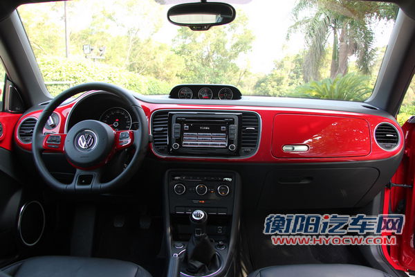 新甲壳虫的内饰颠覆了上一代的简单布置。多功能方向盘、中央大屏幕的音响主机极大地提高了新一代大甲壳虫的功能性和豪华度,顶配车型在中控台上面还加入了时钟和油温表,凸显动感定位。