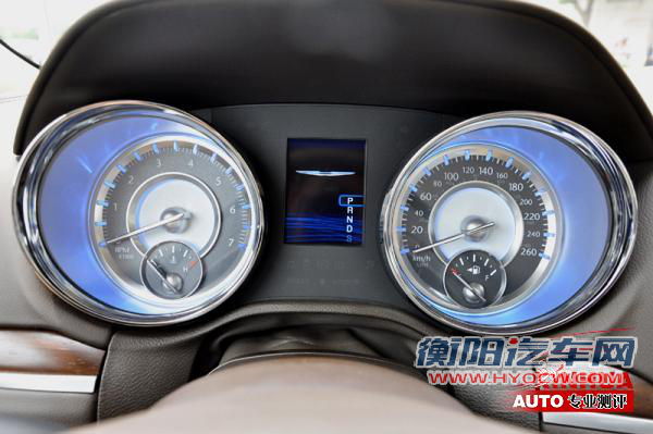 双筒式仪表盘不单有一圈镀鉻饰条点缀,冰蓝色的背光更是充满了科幻的色彩。档把的设计与奥迪A8相似,看上去有点像飞机的推进器,短短的呈“T”字型,手感和造型都非常好。