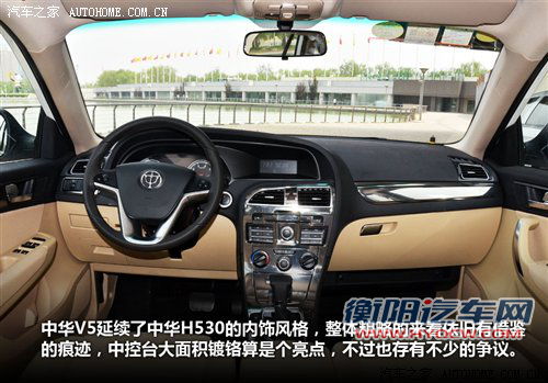 内饰延续了中华H530的设计风格,从造型上来看与奥迪A4L有些神似。其中最大的亮点就是中控台上的大面积镀铬,明晃晃的镀铬也有着不少争议。